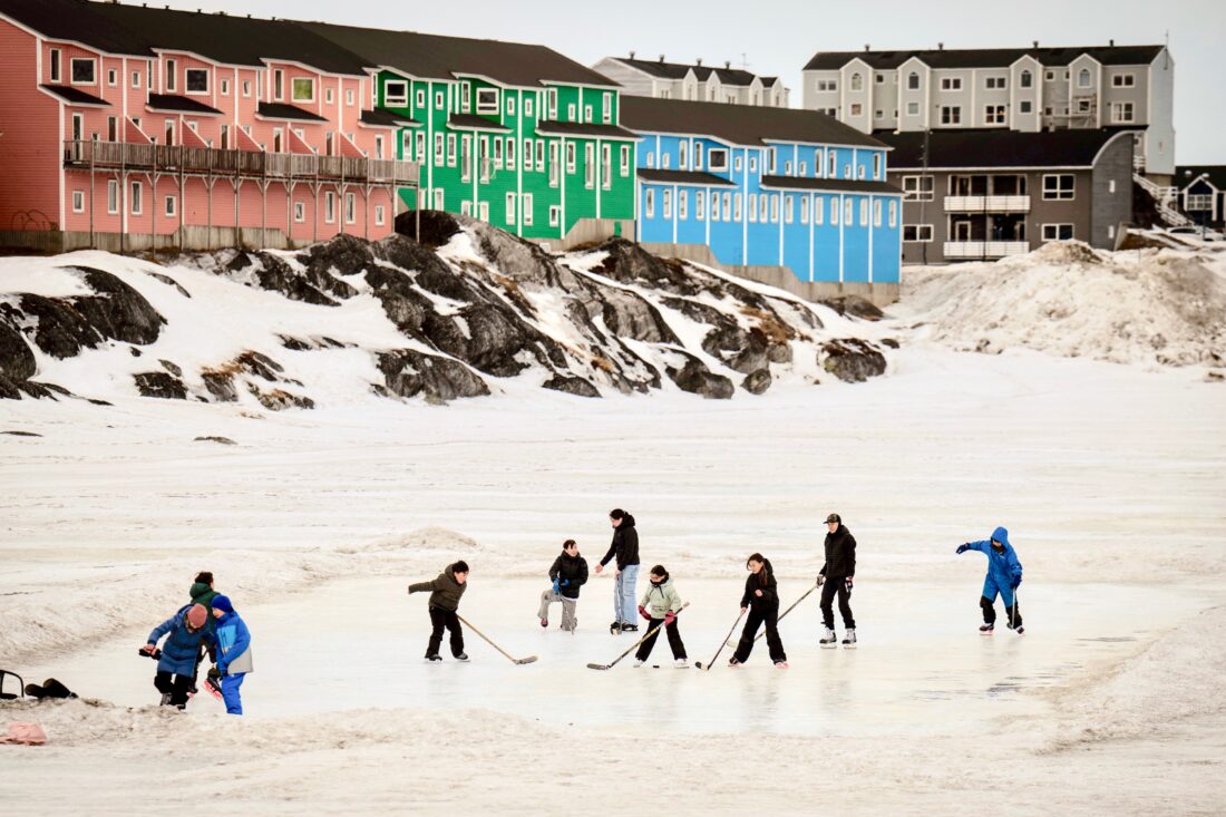 - FILE – Children play on an icy surface in Nuuk, Greenland, Feb. 16, 2025. (AP Photo/Emilio Morenatti, File)