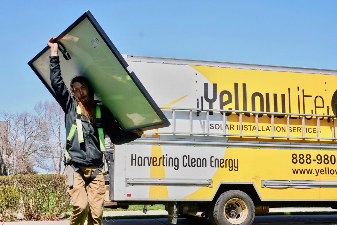 - FILE – Theodore Tanczuk, of solar installer YellowLite, carries a panel from his truck to the roof of a home in Lakewood, Ohio, Wednesday, April 16, 2025. (AP Photo/Sue Ogrocki, File)
