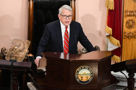 Photo by Evan Bevins The Marietta-Washington County Convention and Visitors Bureau commissioned this ice sculpture commemorating local participation in this year’s celebration of the 250th anniversary of the signing of the Declaration of Independence.