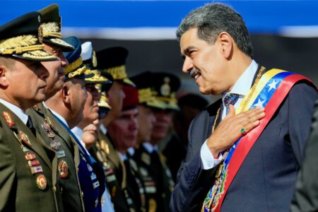 - FILE – Venezuela’s President Nicolas Maduro places his hand over his hear while talking to high-ranking officers during a military ceremony on his inauguration day for a third term, in Caracas, Venezuela, Jan. 10, 2025. (AP Photo/Ariana Cubillos, File)