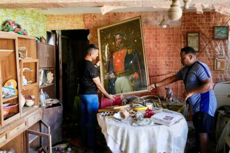 - Jesus Linares, right, removes a painting of independence hero Simon Bolivar at his home, which he says was hit during U.S. military operations to capture Venezuelan President Nicolas Maduro, in Catia La Mar, Venezuela, Sunday, Jan. 4, 2026. (AP Photo/Matias Delacroix)