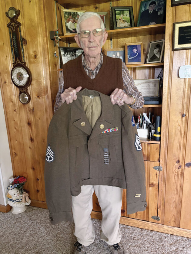 - Francis Sampson and his uniform from World War II. Sampson was discharged in September 1946 as a staff sergeant. (Photo provided)