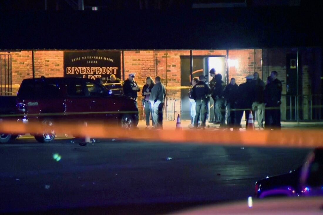 - This image taken from video taken provided by WCPO shows first responders outside of Riverfront Live on Sunday, March 1, 2026, in Cincinnati, Ohio. (WCPO via AP)
