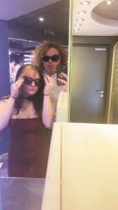 Jayden Snider and his cousin Amelia try on sunglasses before dinner while on a cruise. (Photo provided)