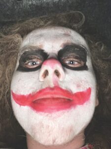 Jayden Snider in clown makeup while being a scare actor for the Field of Screams. (Photo provided)