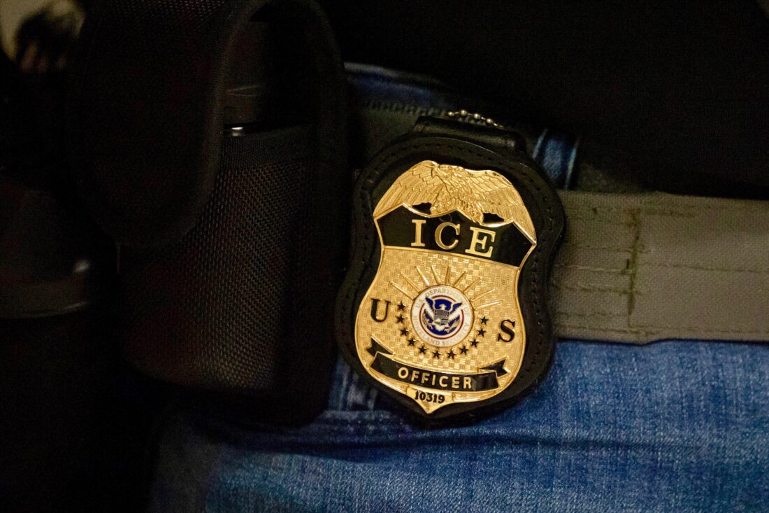 - FILE – A federal agent wears an Immigration and Customs Enforcement badge in New York, June 10, 2025. (AP Photo/Yuki Iwamura, File)