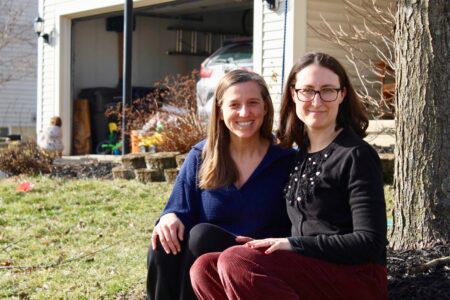 (Ohio Capital Journal Photo) Annie Cannelongo, left, and Annette Singh are neighbors who live in the same Hilliard subdivision. They’re organizing against proposed fuel cell powering a data center just outside their neighborhood.