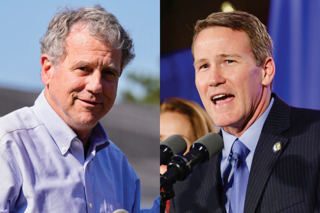 - (AP File Photos) LEFT: Now former U.S. Sen. Sherrod Brown, D-Ohio, speaks at a campaign rally, Oct. 5, 2024, in Cincinnati. RIGHT: Then-Ohio Secretary of State John Husted speaks to supporters at the Ohio Republican Party celebration Tuesday, Nov. 4, 2014, in Columbus, Ohio.