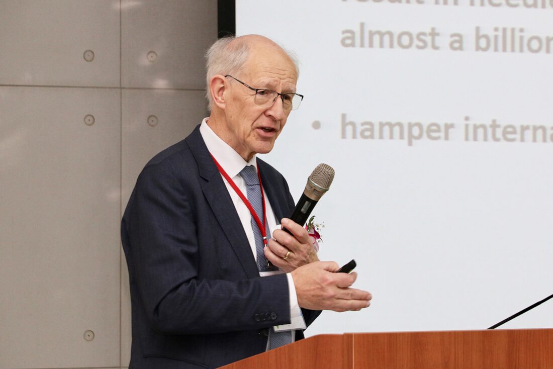 Huub Lelieveld speaks at the National Chung Hsing University in Taichung, Taiwan, in 2019. (World Food Prize Foundation via AP)