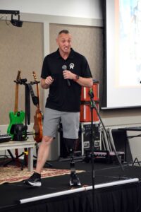 - American Ninja Warrior Gary Weiland speaks at The Amputee Center Fun Fest on Saturday held at the Wood County Resiliency Center. (Photo by Amber Phipps)