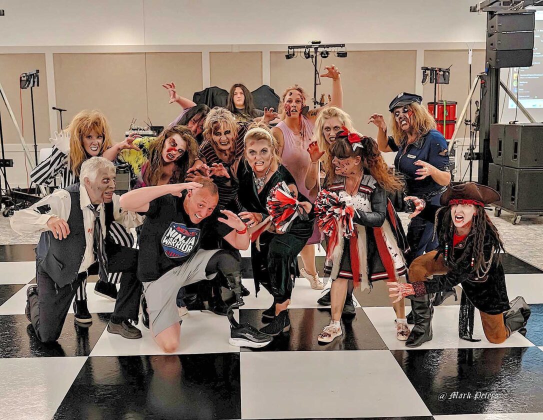 The Amputee Center Fun Fest attendees dressing as zombies posing with American Ninja Warrior Gary Weiland on Saturday. (Photo provided by Catherine Bigley)