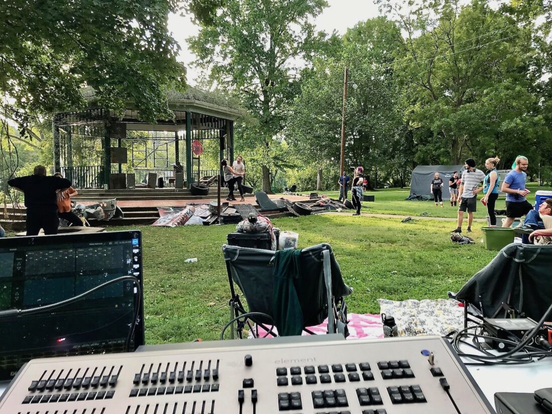 - The cast and crew of Marietta College’s Shakespeare by the River rehearse their production “Macbeth” in summer 2021. (Photo provided)