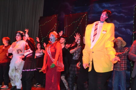 - Miss Argentina (Sawyer Smith) leads a number of ghosts in the song “What I Know Now” in the Belpre High School production of “Beetlejuice Jr.” that will be performed this weekend at the school. (Photo by Brett Dunlap)
