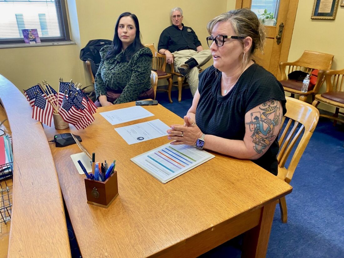 Boys & Girls’ Club of Parkersburg Director of Resource Development Candice Black and CEO Darlene Murphy appeared before the Wood County Commission on Monday to discuss what the Club has been doing and for the commission to consider providing funding to the organization while Wood County Sheriff Rick Woodyard listens. (Photo by Brett Dunlap)