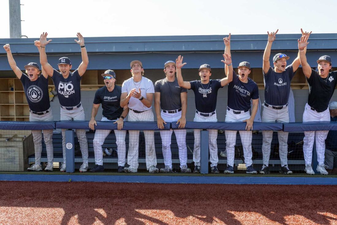 Marietta College boy's baseball team cheering in the dugout. Photo Provided