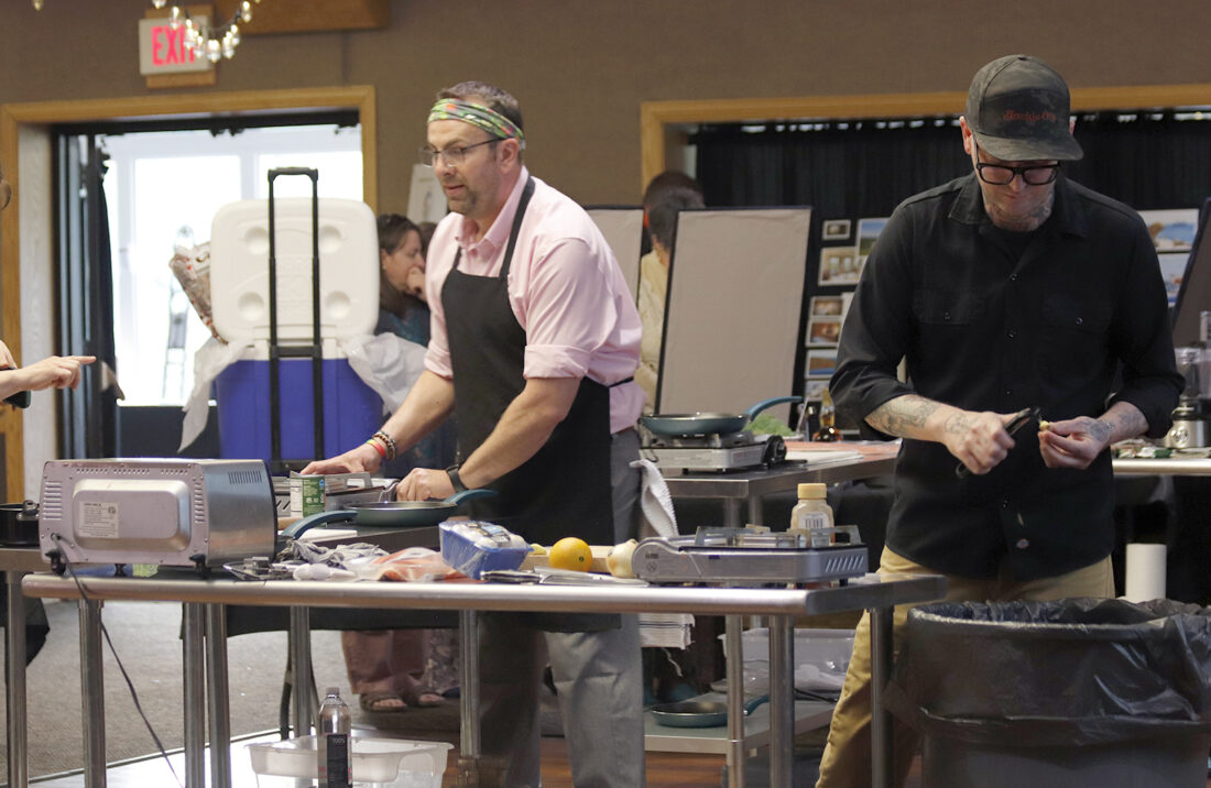 - From left, Chris Fennell and Nate Shahan work as a team during GoPacks’ Top Chef Challenge Friday. (Photo by Gwen Sour)