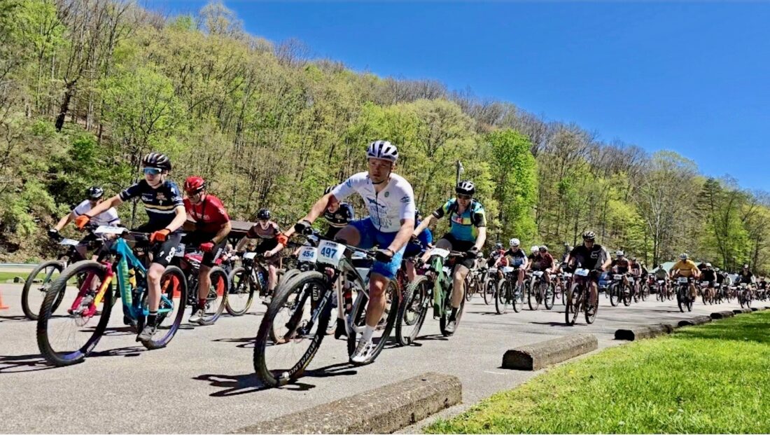 - Hundreds of bicyclists at the start line of the Challenge at Mountwood race at Mountwood Park in April 2025. (Photo provided by Ryan Smith)