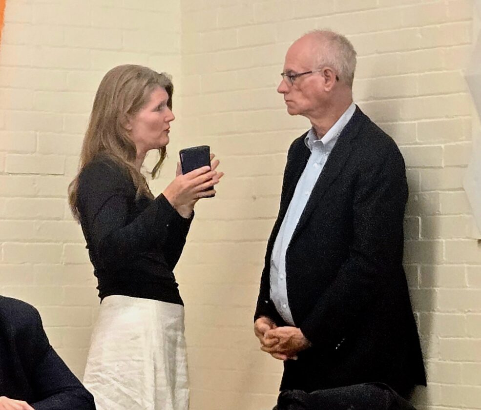 Marietta City Council President Susan Vessels shares a conversation with Councilman Harley Noland prior to the start of Thursday evening’s meeting. For more information read the full article in the weekend edition of The Marietta Times or online at mariettatimes.com.