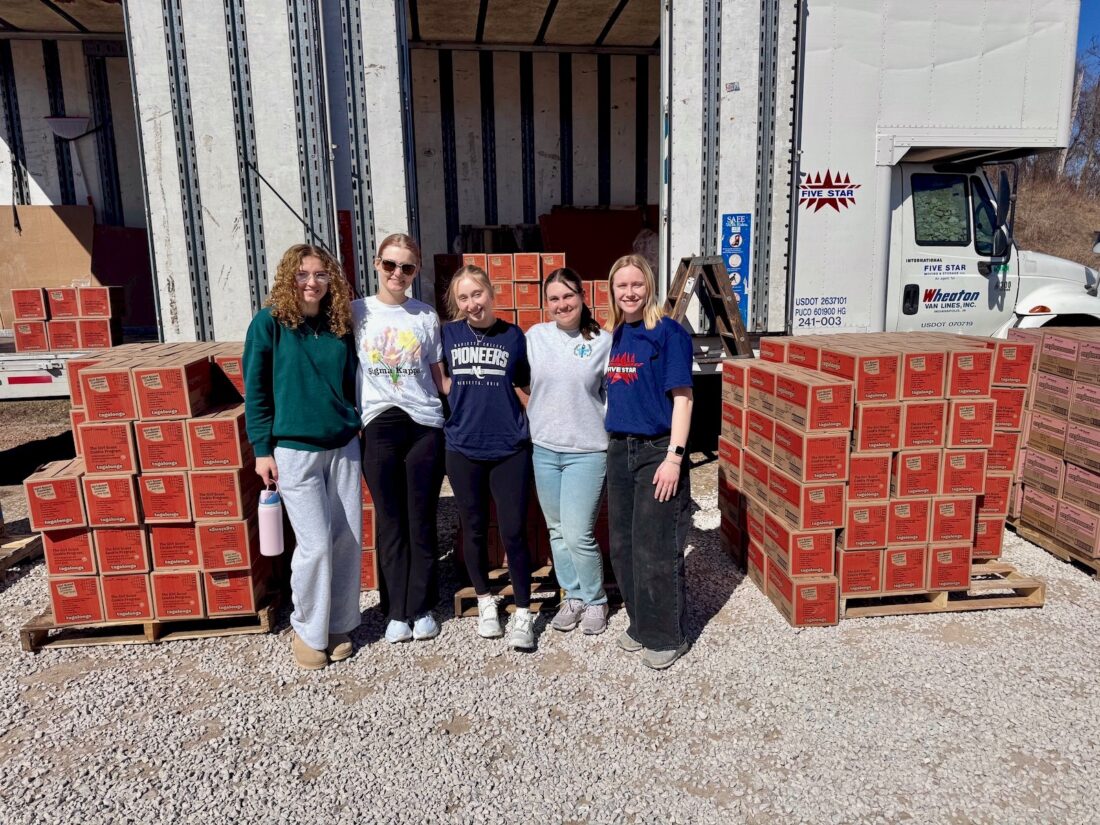On Feb. 28, local sorority Sigma Kappa from Marietta College came to help Five Star and Black Diamond deliver cookies to the local troops of the Mid-Ohio Valley. (Photo provided)