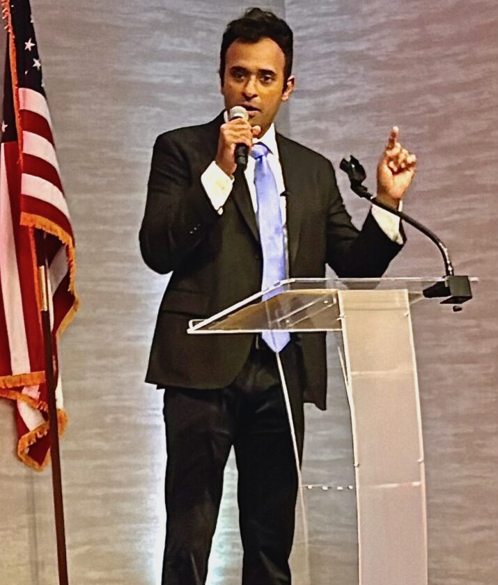 During his presentation, Ramaswamy focused on several traditional conservative themes, saying at one point that he will work to embrace and uphold such family and other values, along with implementing and supporting legislation aimed at lowering costs, improving schools and helping workers earn more. A priority will be to make Ohio a red state to the extent that “Texas and Florida will emulate us, not the other way around,” he told the more than 100 attendees.