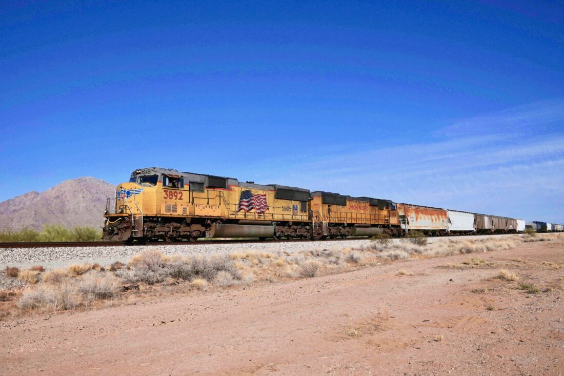 - FILE – A Union Pacific freight train travels along the tracks April 17, 2025, in Eloy, Ariz. (AP Photo/Ross D. Franklin, File)