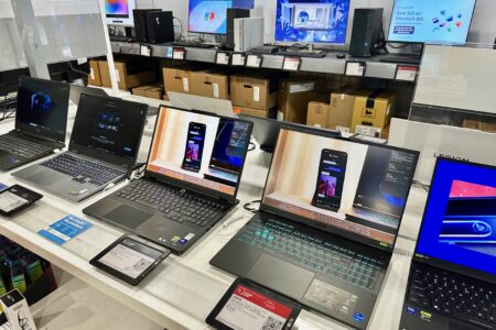 - FILE – Laptop computers are displayed at a retail store in Vernon Hills, Ill., Thursday, Aug. 7, 2025. (AP Photo/Nam Y. Huh, File)