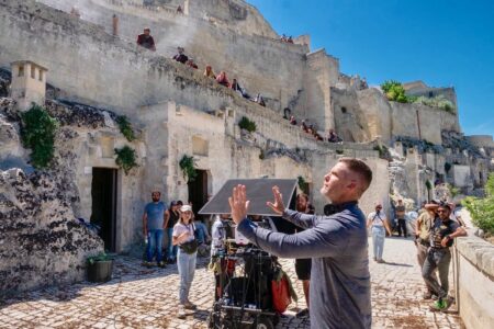 George Harrison Xanthis, who plays the apostle John, says that filming in Matera has helped his performance by immersing him in the world of the show. On the show’s sets in Texas and Utah, “you do step from civilization into the ancient world, whereas here you are just always in the ancient world,” he tells the AP. “It’s amazing.”