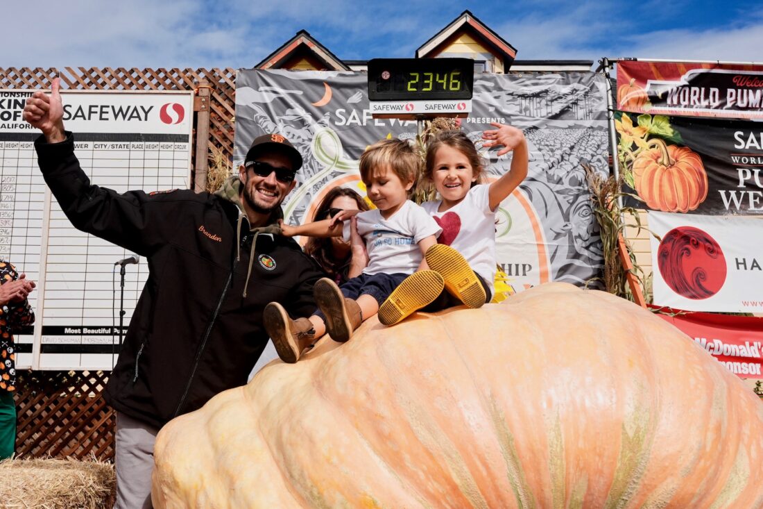 - From left, Brandon Dawson celebrates with his children Roman and Ayla after winning the Safeway 52nd annual World Championship Pumpkin Weigh-Off in Half Moon Bay, Calif., Monday, Oct. 13, 2025. (AP Photo/Godofredo A. Vásquez)