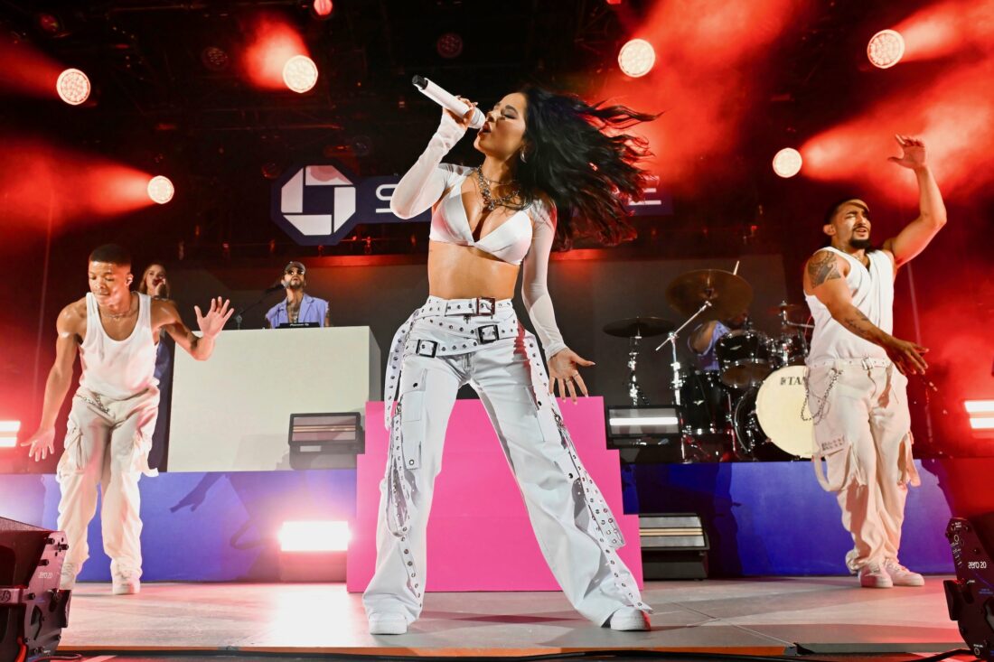 - FILE – Musician Becky G performs during Art Basel in Miami Beach on Dec. 9, 2023. (Photo by Scott Roth/Invision/AP, File)