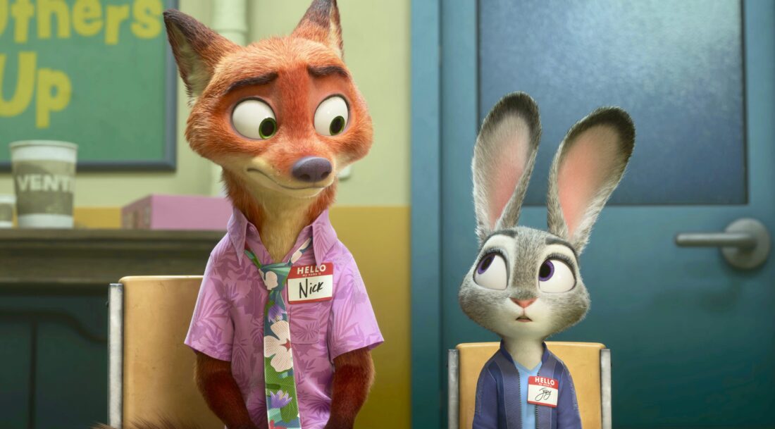 - This image released by Disney shows Nick Wilde, voiced by Jason Bateman, left, and Judy Hopps, voiced by Ginnifer Goodwin, in a scene from “Zootopia 2.” (Disney via AP)
