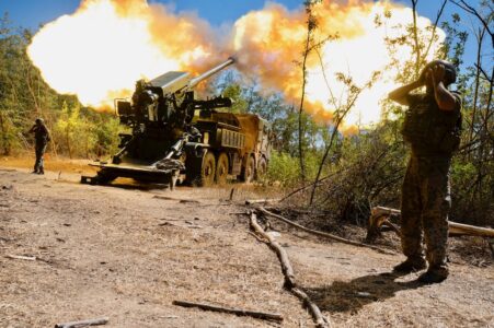 - Ukrainian servicemen of the 44th artillery brigade fire a 2s22 Bohdana self-propelled howitzer towards Russian positions at the frontline in the Zaporizhzhia region, Ukraine, Wednesday, Aug. 20, 2025. (AP Photo/Danylo Antoniuk)