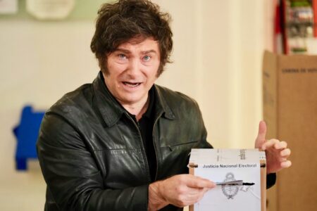 Voting on Sunday in Buenos Aires’ middle-class Almagro district with his sister under heavy security, Milei shook hands with supporters who shouted, “Go president!” and left without making statements to the press.