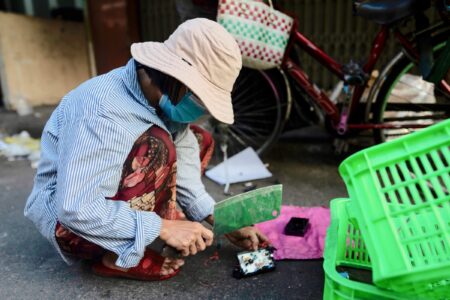 - FILE – An e -waste collector uses a cleaver to remove copper wire from a device in Nhat Tao market, the largest informal recycling market in Ho Chi Minh City, Vietnam, Jan. 31, 2024. (AP Photo/Jae C. Hong, File)