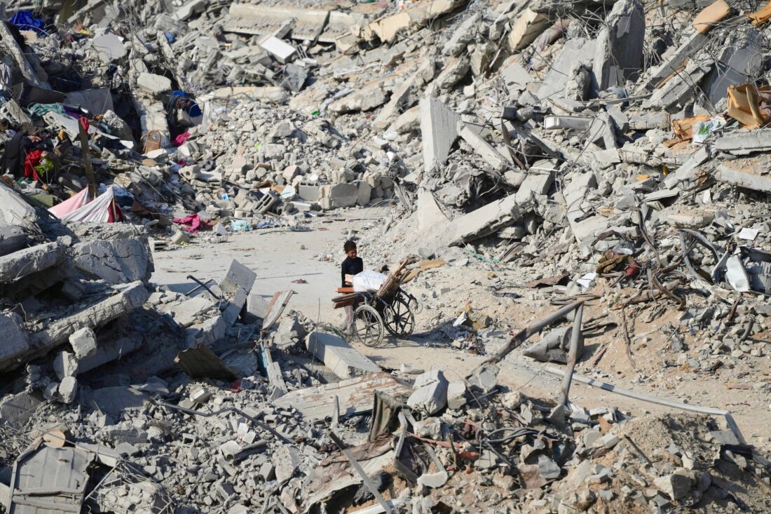 - A boy pushes a wheelchair through the rubble of buildings destroyed in the war between Israel and Hamas, in the al-Nafaq area of the Sheikh Radwan neighborhood in Gaza City, Friday, Oct. 24, 2025. (AP Photo/Abdel Kareem Hana)