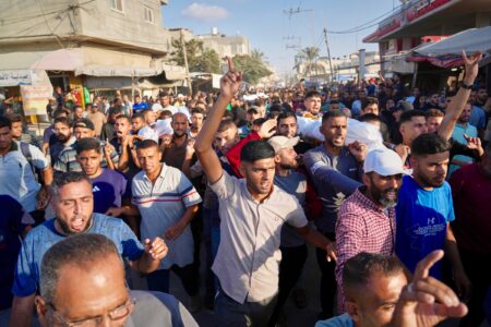 - Mourners carry bodies of Palestinians killed by Israeli fire, during their funeral in Deir al-Balah, Gaza Strip, Sunday, Oct. 19, 2025. (AP Photo/Abdel Kareem Hana)