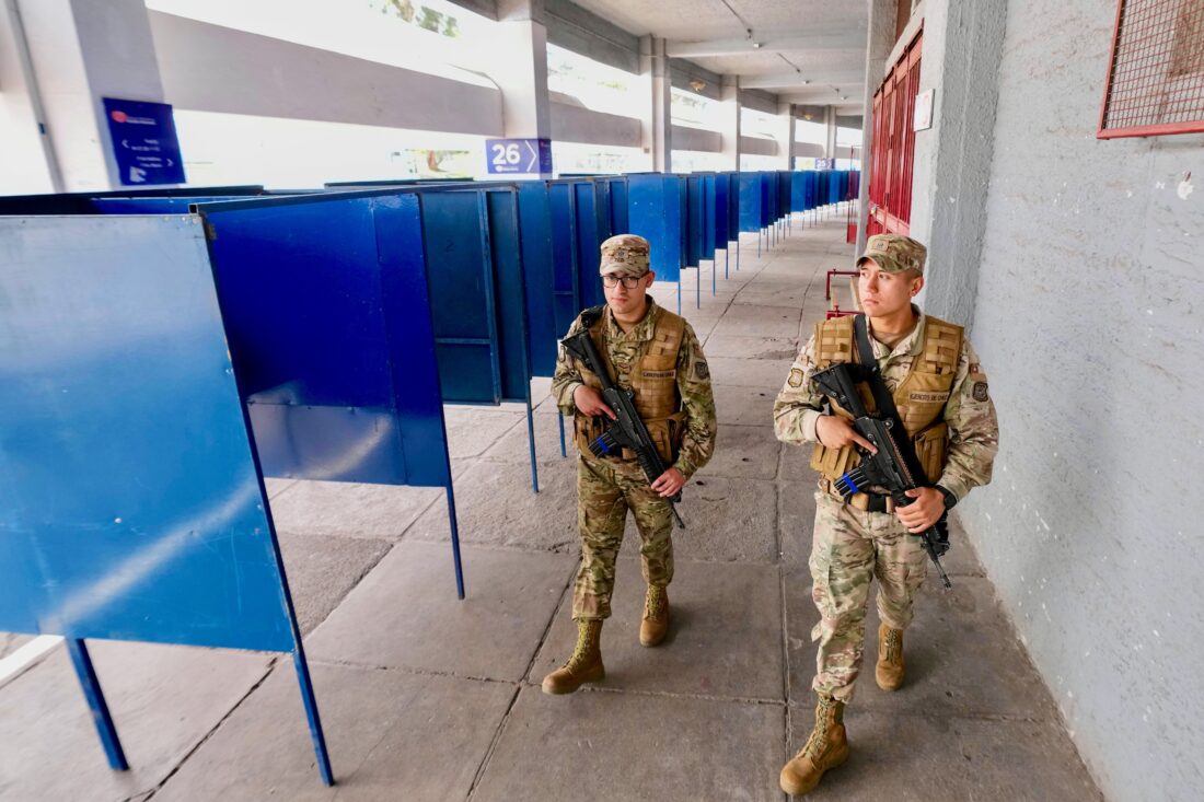 - Soldiers patrol the National Stadium, which will be used as a polling station during Sunday’s general elections, in Santiago, Chile, Saturday, Nov. 15, 2025. (AP Photo/Esteban Felix)