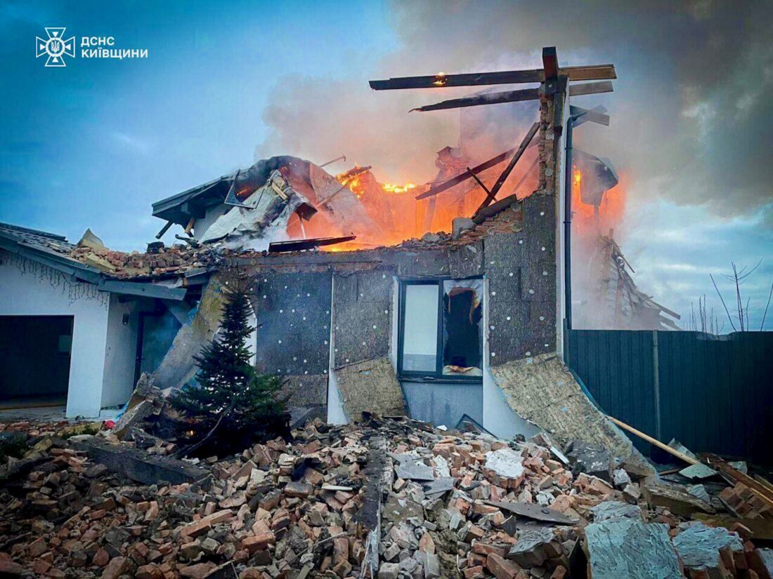 - In this photo provided by the Ukrainian Emergency Service on Tuesday, Dec. 23, 2025, a residential house burns after a Russian strike in Kyiv region, Ukraine. (Ukrainian Emergency Service via AP)