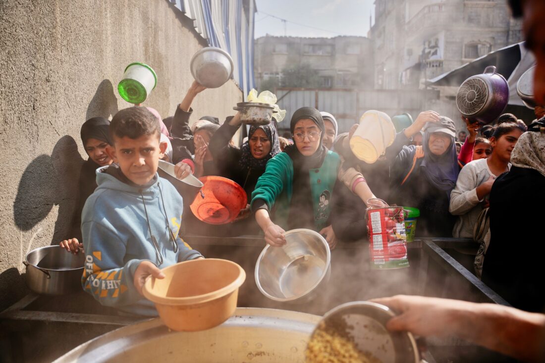 - FILE – Palestinian women struggle to receive donated food at a community kitchen in Nuseirat, central Gaza Strip, Wednesday, Dec. 17, 2025. (AP Photo/Abdel Kareem Hana, File)