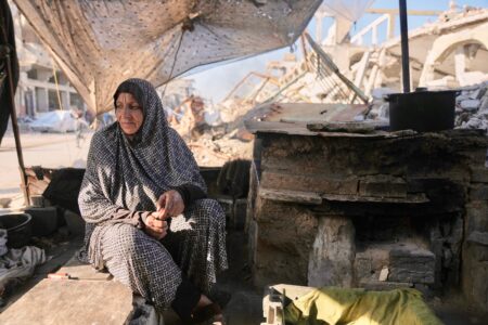 - Palestinians stand next to a tent set up on the rubble of buildings destroyed during Israeli air and ground operations in the Sheikh Radwan neighborhood, in Gaza City, Tuesday, Dec. 30, 2025. (AP Photo/Abdel Kareem Hana)