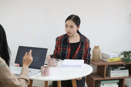 CAPTION CORRECTS THE NAME - Devin Overman, left, and Alison Dumbell, co-founders of consulting firm Upstage Entertainment, advise South Korean actors on navigating the Hollywood casting system in Seoul, Sunday, Nov. 9, 2025. (AP Photo/Juwon Park)
