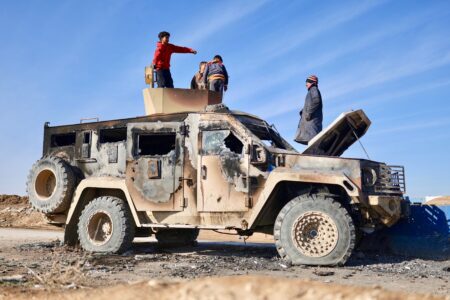 - Local youth play atop of a damaged armored vehicle belonging to the Syrian Democratic Forces (SDF) at the site of clashes with Syrian government forces in the village of al-Hol in northeastern Syria’s Hasakeh province, Syria, Wednesday, Jan. 21, 2026. (AP Photo/Ghaith Alsayed)