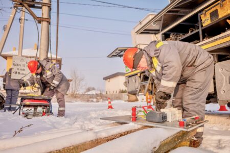 They work in the snow amid temperatures of -15 C (13 degrees F) from early morning till midnight, Yurii Bryzh, who leads the Boryspil regional department of private electricity provider DTEK, told The Associated Press.