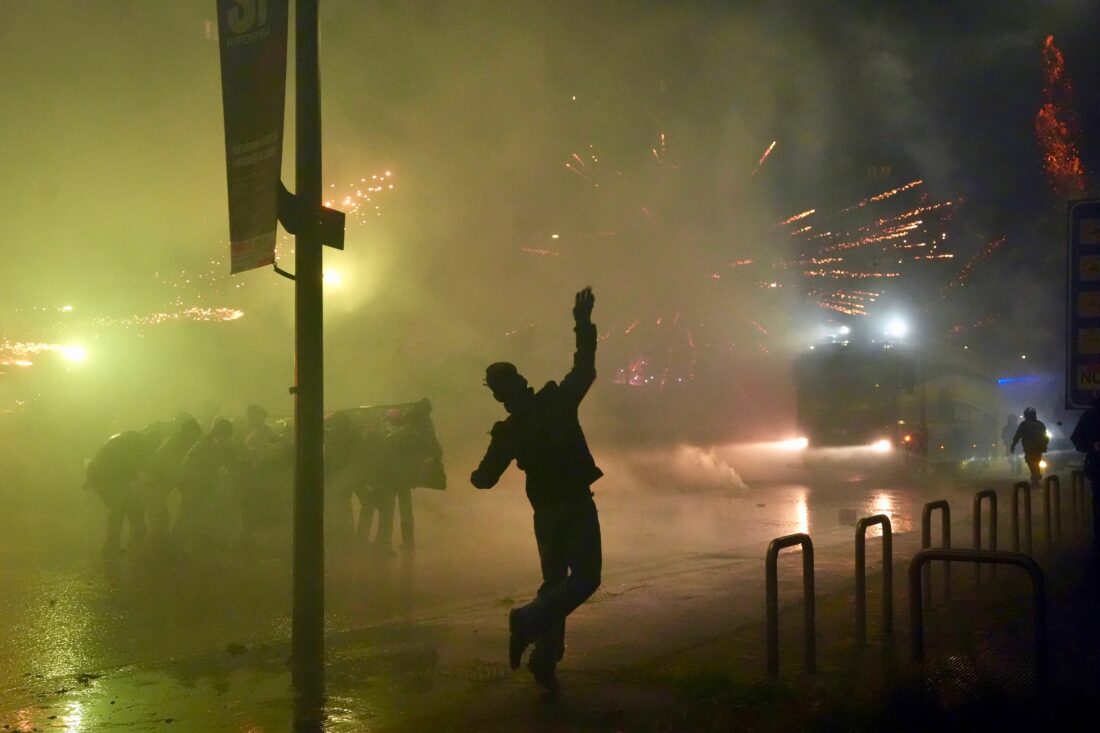 Beforehand, a group of masked protesters had set off smoke bombs and firecrackers on a bridge overlooking a construction site about 800 meters (a half-mile) from the Olympic Village that’s housing around 1,500 athletes.