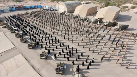 - In this image provided by Sepahnews of the Iranian Revolutionary Guard on Feb. 16, 2026, shows troops standing at attention during the guard’s drill in the Persian Gulf on Monday, Feb. 16, 2026. (Sepahnews via AP)