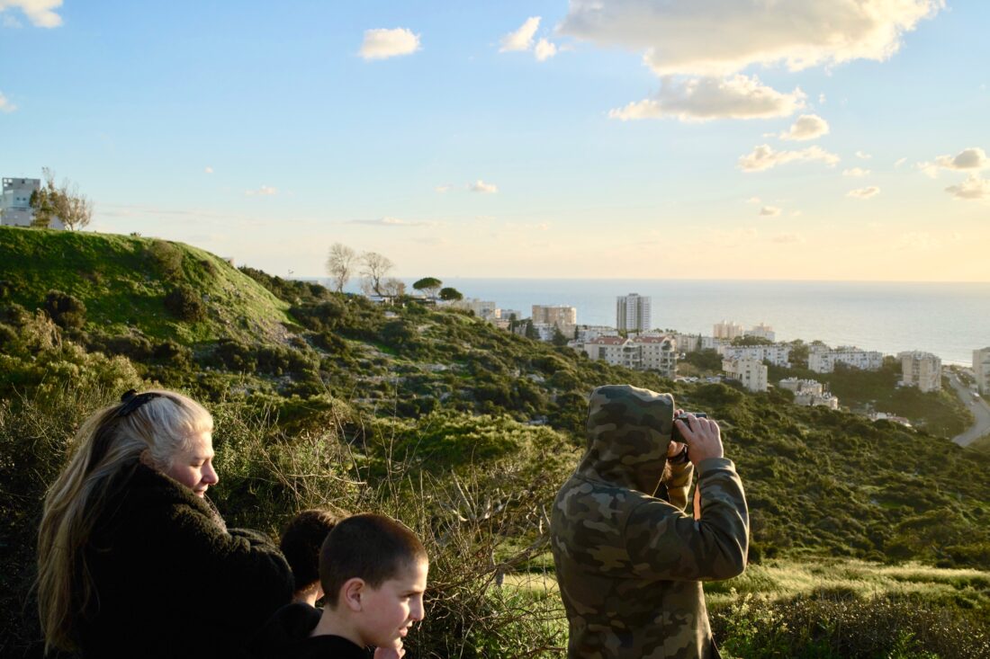 From a lookout, a man uses a binocular looking for the possible arrival of the US Navy's aircraft carrier USS Gerald R. Ford in the Mediterranean Sea near the coast of Haifa, northern Israel, Friday, Feb. 27, 2026. (AP Photo/Leo Correa)
