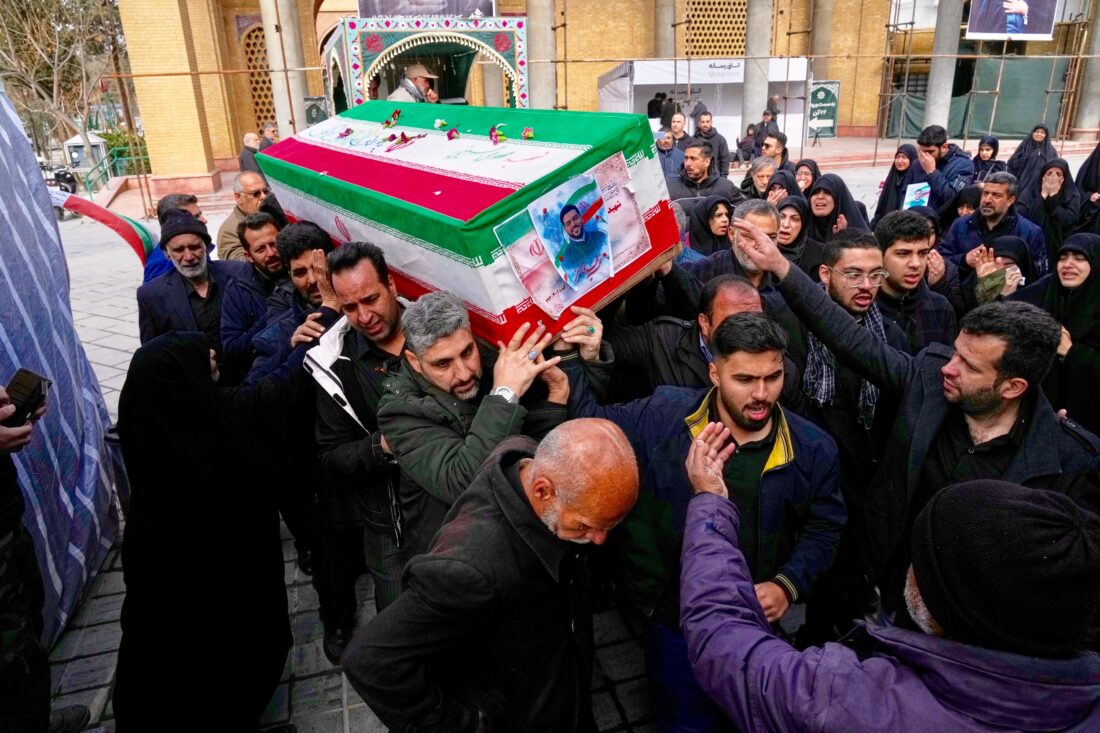 - The coffin of Mehdi Hosseini, a man killed in a U.S.-Israeli strike, is carried for burial at Behesht-e Zahra cemetery in Tehran, Iran, Monday, March 9, 2026. (AP Photo/Vahid Salemi)