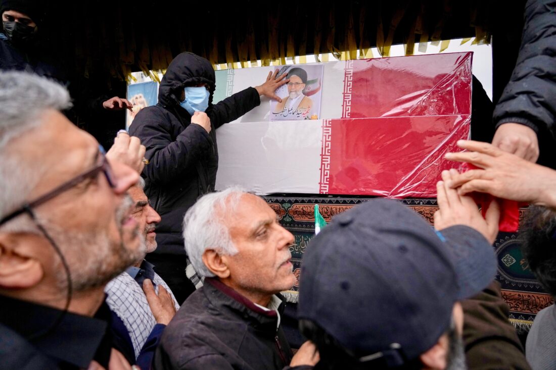 - Iranians reach toward the coffins as they follow the funeral procession of Iran’s intelligence minister Esmail Khatib and, according to Iranian officials, his wife and daughter, in Tehran, Iran, Friday, March 20, 2026. (AP Photo/Vahid Salemi)