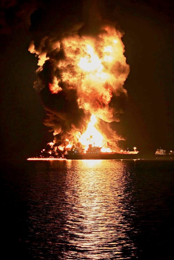 - An oil tanker burns after being hit by an Iranian strike in the ship-to-ship transfer zone at Khor al-Zubair port near Basra, Iraq, late Wednesday, March 11, 2026. (AP Photo)