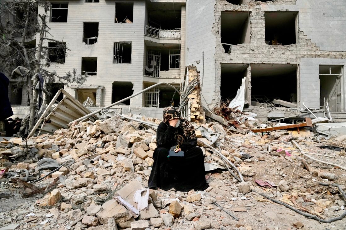 - A woman sits on rubble across from a residential building damaged last Sunday during the U.S.-Israeli air campaign in Tehran, Iran, Thursday, March 12, 2026. (AP Photo/Vahid Salemi)