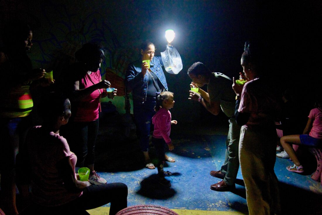 Others played dominoes by a rechargeable lightbulb.